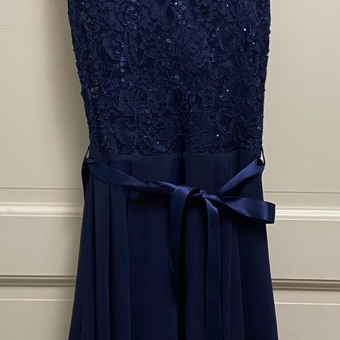 Tyylikäs tummansininen juhlamekko esim. rippijuhliin. Merkki Party Line, koko XS.