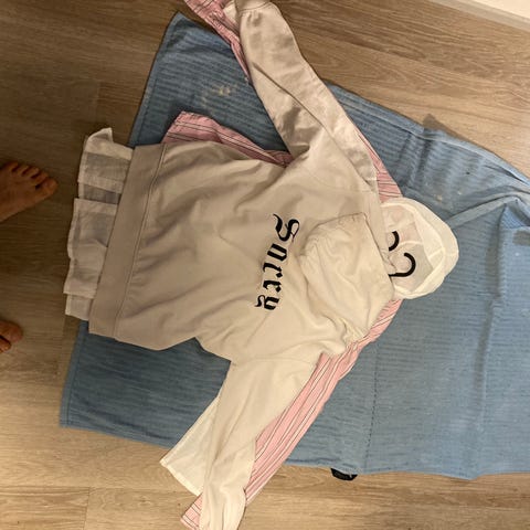 Myydään miesten 157 merkkinen uudenveroinen huppari. Väri beige, koko L., 69 % puuvillaa, 31% polyesteria.pari kertaa päällä ollut.