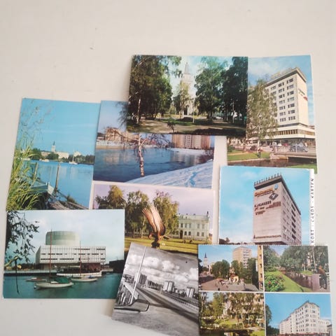Tässä on hyvää paikallishistoriaa Oulusta 1900-luvun alkupuolelta alkaen postikorttien kuvien kautta. Kortit maksavat 3 euroa kappale. Postimaksu on 2,75 euroa kirjeessä 50 grammaan asti. Sitä painavampi kirje maksaa 5,50 euroa.