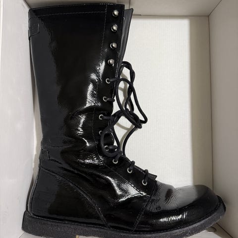 Myydään uudet, kerran pidetyt mustat mokkanahkaiset maiharit kultaisilla nauhoilla. Merkki Migant ja koko 38. Myydään koska itselle liian pienet.