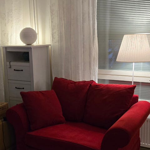 Hakusanat: Tuoli, tuolit, sisustus, nojatuoli, nojatuolit, lepotuoli, punainen, isku, pyörät, huonekalu, huonekalut, Valmistaja, moderni retro, käytetyt huonekalut