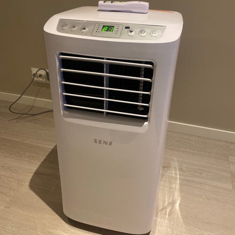1070 W tehoinen Esprit ilmastointilaite. Meidän asunnossa pitänyt yhden huoneen hyvin viileänä (~15 m²). Poistoputki laitetaan ikkunasta pihalle, josta laite puhaltaa kuuman ilman pois, sisältyy luonnollisesti kauppaan. Kuvassa säleikössä on likaa mutta puhdistan laitteen ennen ostoa. Laite on siistissä kunnossa, muovit ovat hieman kellastuneet mutta toimii niin kuin pitääkin.