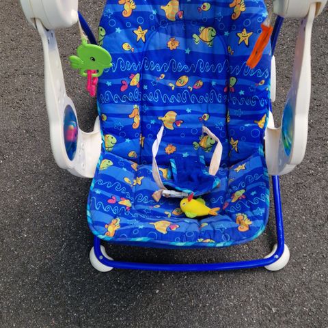 Hyvässä kunnossa oleva sitteri/kehto. Tämä oli meidän arjen pelastus. Meidän vauva tykkäsi vilkkuvista valoista ja musiikista, joka tuli laitteesta. Saa myös tärinän päälle.