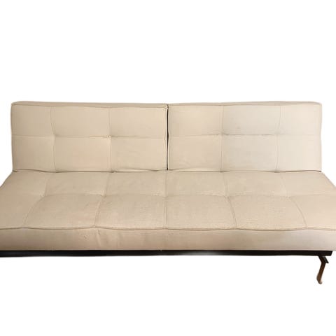 Puinen sohva. Ehjä. Toiminut lasitetulla parvekkeella kesävuoteena. Levitettynä syvyys 180cm. Haku Pitäjänmäestä mahd. nopeasti muuton alta.