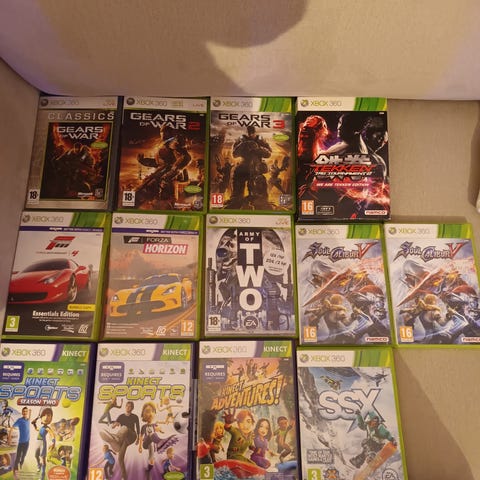 Xbox 360 pelipaketti, jossa useita eri pelejä.