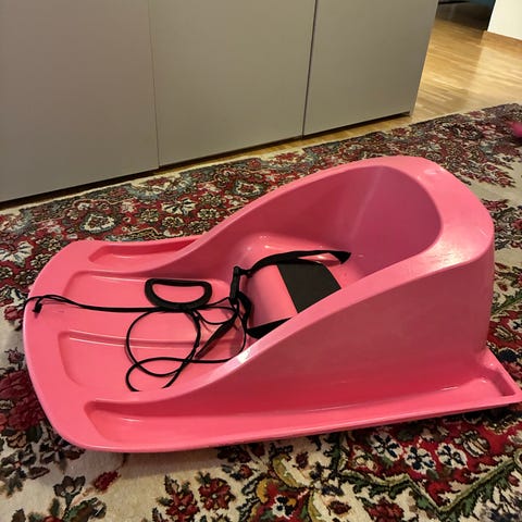 Vauvan pulkka Plastex turva vyöllä. Voidaan postittaa
