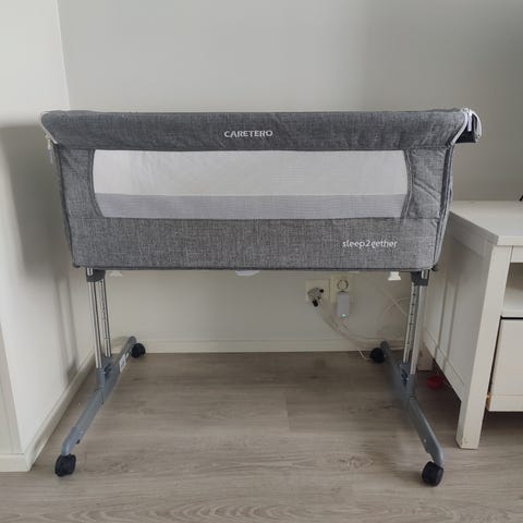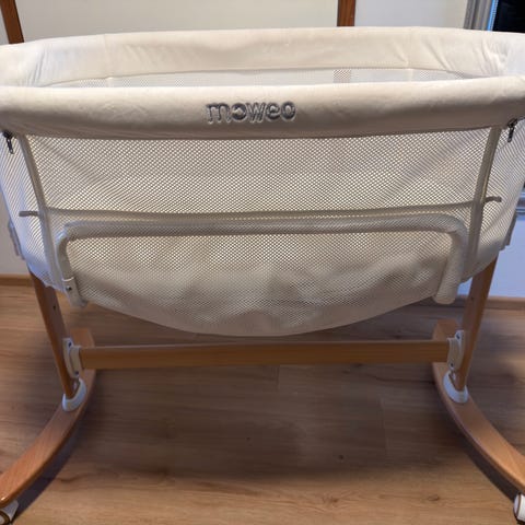 (Uusi) Moweo Sivuvaunusänky. Vauvoille ja pienille lapsille tarkoitettu sänky, jossa on tukeva metallirunko ja pehmustetut tekstiiliosat. Sänky on varustettu pyörillä helpompaa siirtelyä varten. Mukana tulee säilytys- ja kuljetuspussi. Soveltuu käytettäväksi lastenhuoneessa tai vanhempien makuuhuoneessa erillisenä juniorisänkynä tai sivuvaununa sängyn vieressä valmistajan ohjeiden mukaan.