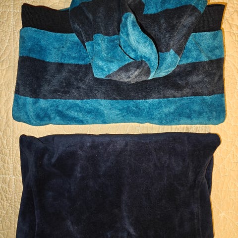 Itse ommeltuja vaatteita, käytetty n.74-80cm koossa. Ehjiä, ainoastaan paidan helman tikki löystynyt.