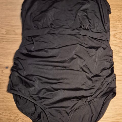 Äitiys uimapuku. Etuosaan ommeltuna muutamalla ompeleella pinkki lisäosa, ettei ole niin avoin.