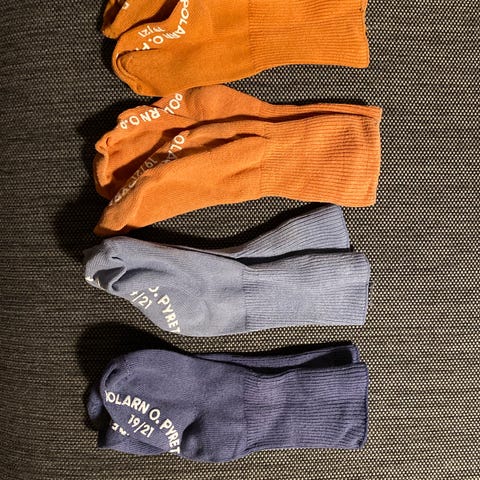 Pop jarrusukkapaketti koossa 22/24. Suurinosa tullut meille uutena, kahdessa ylimmässä rivissä jarrut hyvässä kunnossa, alarivissä jo kuluneemmat liukuesteet. Yksi pariton yksilö mukana, mille yritän vielä etsiä paria.