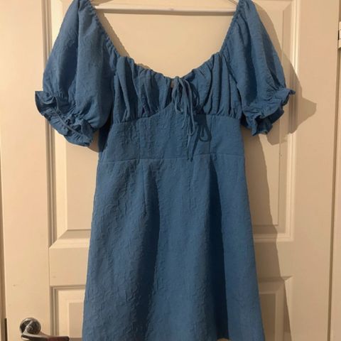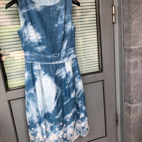 Tummansininen Cellbes beach -mekko. Koko 50/52, mutta vastaa M/L-kokoa. Kainalo-kainalo 48 cm ja pituus 106 cm. Kangas joustaa jonkin verran. Materiaali puuvillaa ja viskoosia.