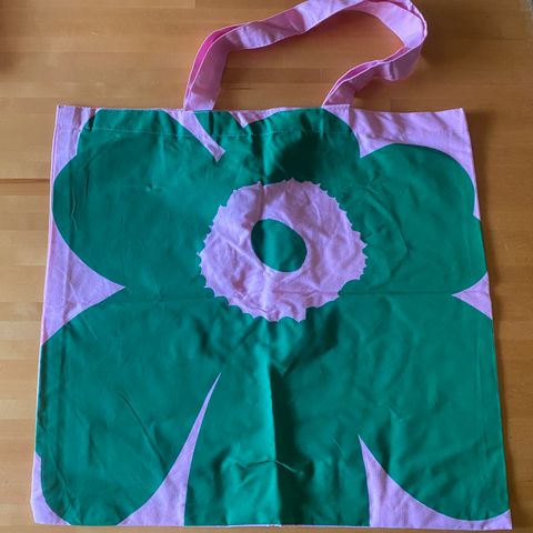 Marimekko Unikko kangaskassi, juhlavuoden mallistoa. Kassi on valmistettu kankaasta ja siinä on punainen ja vaaleanpunainen kukkakuviointi. Sopii arkikäyttöön ja kevyiden tavaroiden kantamiseen. Uusi.