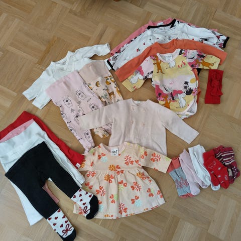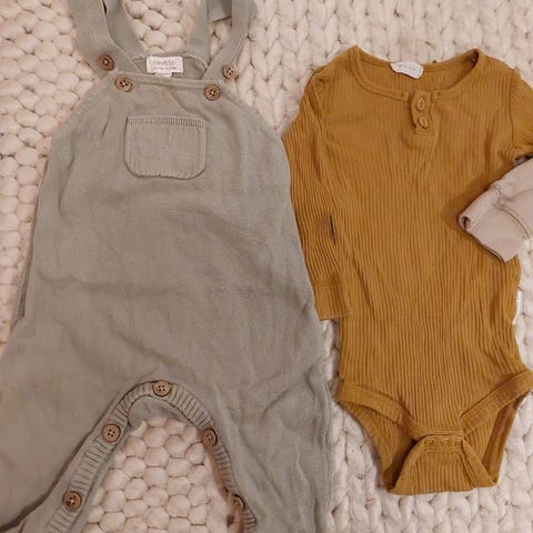 Kaksi haalaria ja yksi body. Yhden lapsen pitämät.