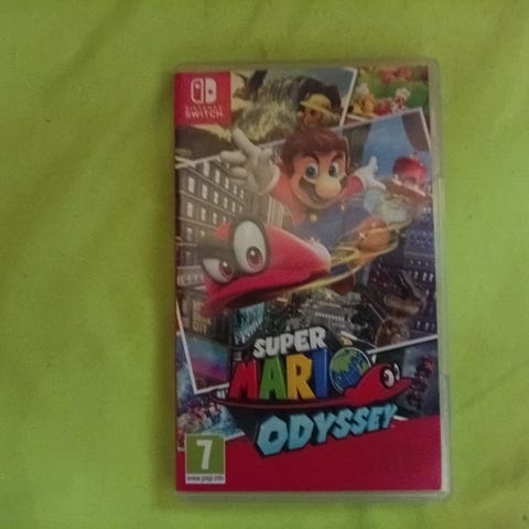 Nintendo Super Mario Odyssey -peli Nintendo Switch -pelikonsolille. Pakkaus sisältää pelikasetin ja kotelon kansipapereineen. Pelin ikäraja on PEGI 7. Toimii kaikilla Nintendo Switch -konsoleilla