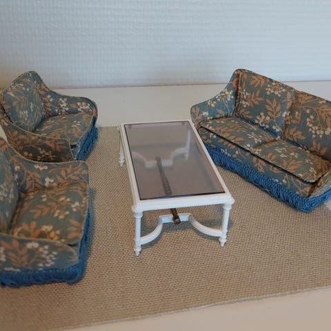 Sohvapöydässä ajan patinaa, muuten siistit ja hyväkuntoiset.