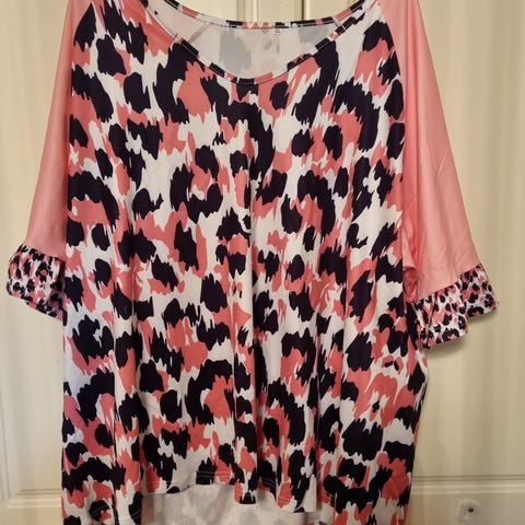 Reserved naisten T-paita, koko XL. Materiaali polyesteriä. Leopardikuosi. Kerran käytetty.