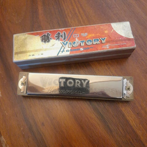 Victory huuliharppu. Pitkän mallinen, useilla ääniaukoilla varustettu huuliharppu. Väriltään musta, rungossa kullanväriset tekstit. Valmistusmaa Kiina. Soveltuu puhallinsoittimeksi esimerkiksi harraste- tai harjoittelukäyttöön. Käyttämätön
