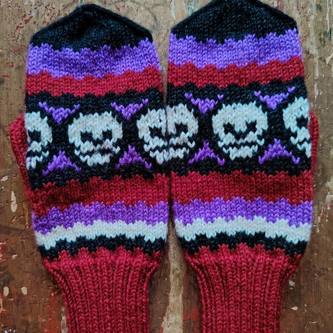 avainsanat lapaset käsineet pääkallo pääkallolapaset halloween kirjoneule miekka miekkakuvio kirjoneulelapaset tumput