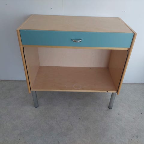 Vanha seinäkaappi, voi laittaa myös lattialle. Näyttäisi koivuviilulta. Vaatii pientä laittoa. Leveys 100cm, korkeus 73cm, syvyys 30 cm.