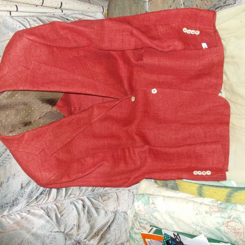 Joulu -teemainen puku, takki + housut + kraka (yksivärinen punainen) koko L. Kerran käytetty.