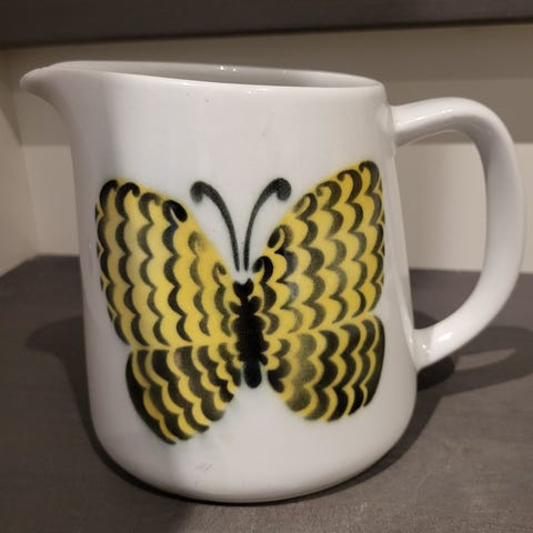 myydään Arabian keltainen, hyväkuntoinen Heluna-kannu 0,5 litraa.