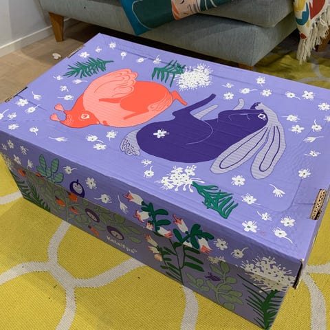 Myydään v. 2023 äitiyspakkauksen laatikko, ei patjaa mukana. Yksi pieni kolhu kannessa, muutoin hyvässä kunnossa, näkyy kuvassa. Koiratalous.