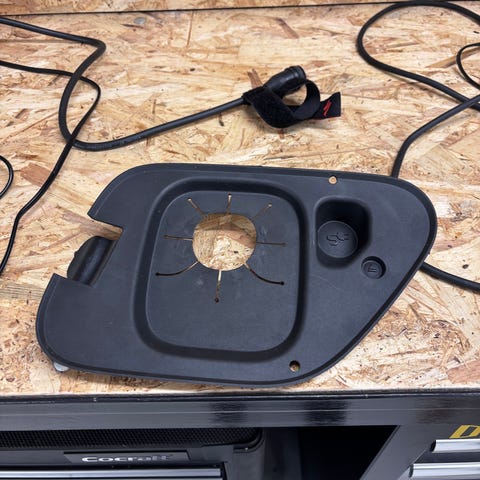 Tuhkan värinen keskikonsolin paneeli. Käynyt vaan paikallaan. Käytännössä uusi