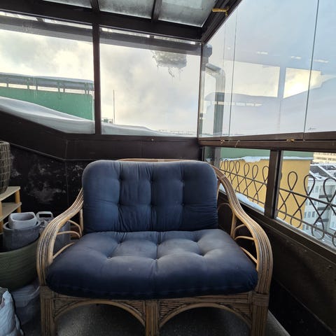 Pieni kaksitasoinen hyllykkö, jossa kaksi tasoa säilytykseen. Renkailla! Ollut lasitetulla parvekkeella.