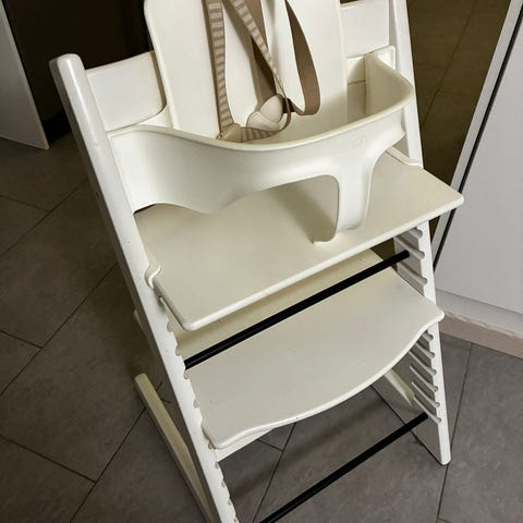 Stokken tripp trapp, valmistettu 01/04 eli tähän sopii myös uudet muoviset baby set osat! Normaalia käytönjälkiä mutta yleisilme on edelleen siisti ja menee vielä seuraavalle perheelle hyvin!