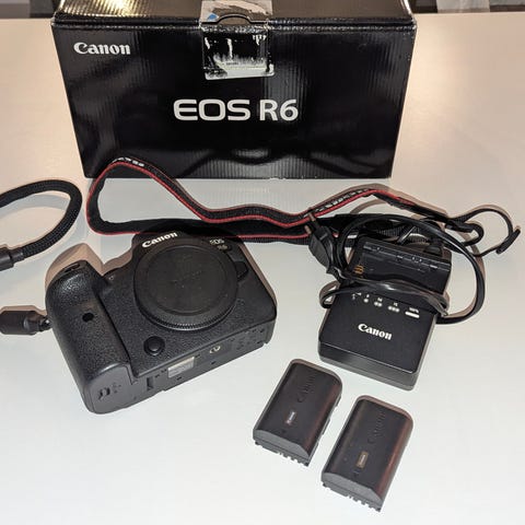Mukava työjuhta, jolla taittuu hiljaiset setissä hiipimiset kuin elävän kuvan tarinat. Alkuperäisessä laatikkossa mukana akku, akkulaturi, hihna ja mukana tulleet piuhat. Lisäksi settiin kuuluu EOS R-EF adapteri, jonka avulla runko keskustelee saumattomasti EF-linssien kanssa autofocuksen nopeudesta tinkimättä. Takanäyttö naarmuton, priimakunnossa. Shuttercount kohtuullinen 78000 ja kamera sijaitsee Helsingissä.