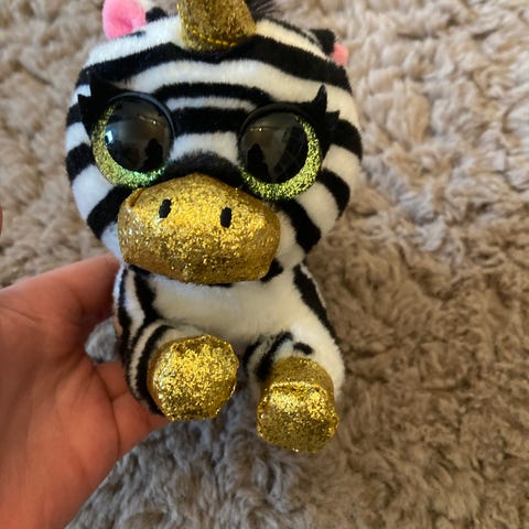 Ty Dotty pehmolelu, monivärinen leopardihahmo. Pehmolelu on valmistettu pehmeästä, kirjavasta plyysikankaasta, jossa on leopardikuosi ja suuret silmät. Sopii lapsille leikkeihin tai koristeeksi huoneeseen. Koko noin pienen pehmolelun kokoluokkaa (tarkka mitta ei tiedossa). Hiukan vääntynyt naamasta.