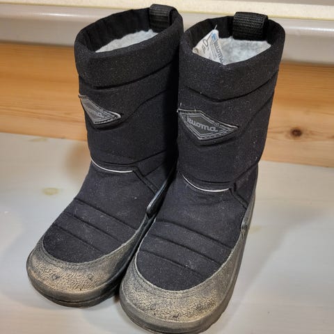 Pinkit Kuoma lasten talvikengät, koko 26. Muuten siistikuntoiset, varren ulkosivulla ollut nimikointi joka peitetty, kts kuvat.