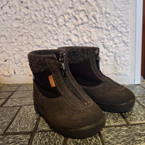 Siistit ja hyväkuntoiset kuomat seuraavalle lapsukaiselle. Sisävuori edelleen ilmava, joten jalat pysyvät lämpiminä.