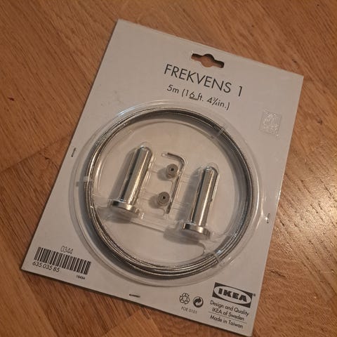 Valkoinen verhovaijeri, toimitetaan pakkauksessa kiinnityskoukkujen kanssa. Soveltuu verhojen ripustamiseen esimerkiksi ikkunoiden yläpuolelle tai muihin kevyisiin verhoratkaisuihin. Vaijeri voidaan lyhentää tarvittaessa sopivaan mittaan asennuskohteen mukaan.