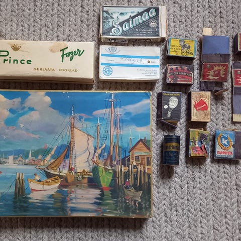 Erä vanhoja elintarvikepakkauksia. Jyväshyvä Marita keksejä, Jalostajan Turun sinappia ja jouluherneitä, Tukon kulta mokka, Hangon keksin tomato sticks, Paulig vanilliinisokeri, Fritz sten väkevää pippuria, Sok liivatejauhe, Valio karhu juustoa, marina juustoa ja Viola juustoa. Myydään koko erä yhdessä. Nouto.