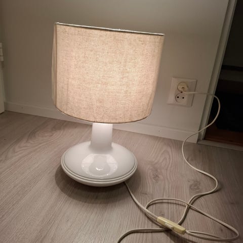 Uudenveroinen, joulukuussa Clas Ohlsonilta ostettu pöytävalaisin. Mukana pellavasekoitteinen varjostin sekä lamppu. Ovh. 59,90€.