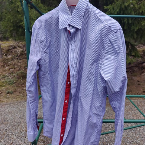 Myydään vaaleanpunainen kauluspaita, jossa on harmaa ruudukko. Hyvässä kunnossa. Koko C 42
