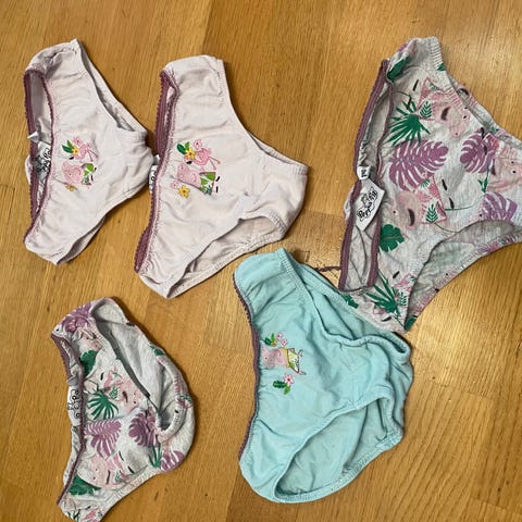 Tyttöjen pikkuhousut koko 110/116 cm. Paketissa 6 kpl pikkareita. Kunto hyvä, mutta printit vähän haalistuneet. Yhdessä printti lähes kadonnut.