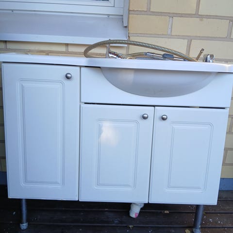 Myydään siistikuntoinen käyttämätön Tammiholman valkoinen allaskaappi (56cm). Kaksi ovea hidastimilla. Mukana vetimet ja kiinnikkeet. Saranat ehjät ja toimivat. Hyväkuntoinen, siisti ja tukeva kaappi. Sopii esimerkiksi kylpyhuoneeseen tai WC-tilaan