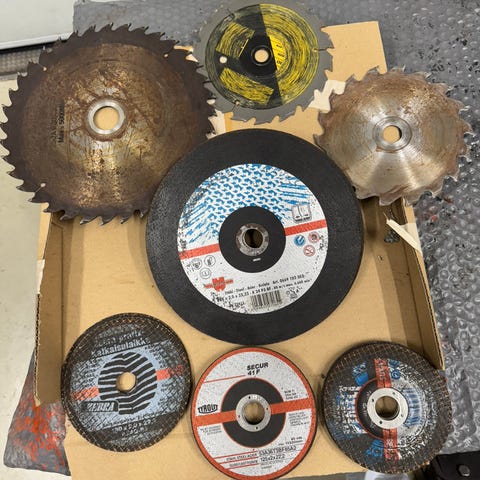 Katkaisulaikat metallin leikkaamiseen, yhteensä 3 kappaletta. Soveltuvat kulmahiomakoneeseen. Laikat on tarkoitettu metallin katkaisuun ja muotoiluun. Tarkemmat mitat ja tekniset tiedot eivät näy kuvasta.
