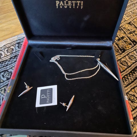 Myyn kaulakoru/korvakorut setin. Materiaalit: hopea, safiiri ja zirkonit. Mukana aitoustodistus.