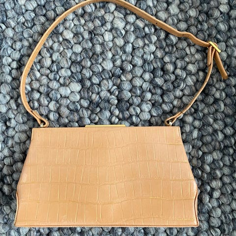 vaaleanruskea ehjä käsilaukku 70 luvulta paksua nahkaa samattisisus 2 taskua+vetoketjutasku 10e