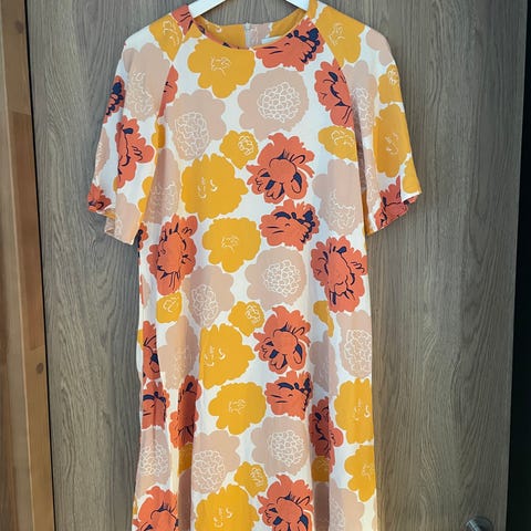 Uudenveroinen Marimekon Huilu pieni tori -kuosinen mekko, koko 34🫶🏼 kauniisti laskeutuvaa kangasta, viimeiset mallikuvat Marimekon sivuilta. Saa tarjota!