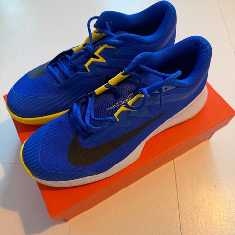 Hyväkuntoiset tenniskengät, sopii kovalle alustalle sekä esim padeliin. Käytetty ainoastaan hallissa, erittäin hyvässä kunnossa, ainoa kulumajälki toisessa pohjassa, muuten kunto erinomainen. Koko us 10 / 44. Nouto Lauttasaaresta.