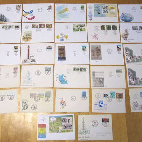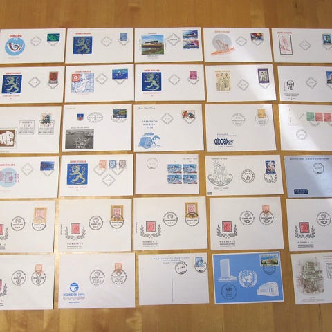 1970-luvulta ensipäiväkuoria 55 kpl, yht. 55 euroa. Pakettiautomaattilähetys Manner-Suomeen 6 euroa, josta saa lähetyksen seurantanumeron. Nouto Kuopiosta keskustasta. En käytä ToriDiiliä.