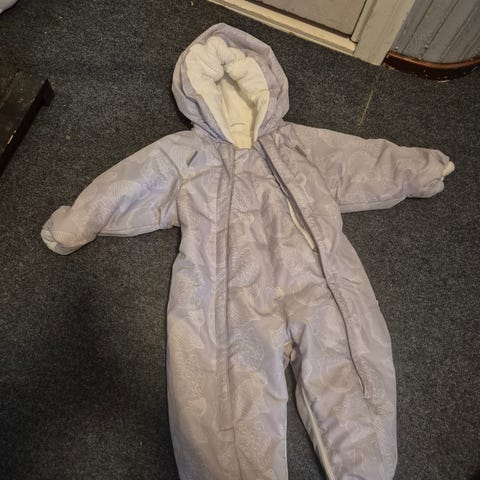Hyvä kunto! Ainoastaan vähän pehmentymää polvissa, jonka tuntee kädellä. Haalarissa on mahdollisuus sulkea lahkeet ja hihansuut. Jalkalenksut. Saa makuupussiksi.Kaksi vetoketjua helpottaa pukemista. Sopii vauvalle tai taaperolle ulkoiluun.