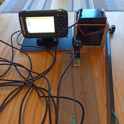 Lowrance Hook TS 7 veneen laita telineellä. Ollut käytössä kanootissa. Ei karttakorttia.