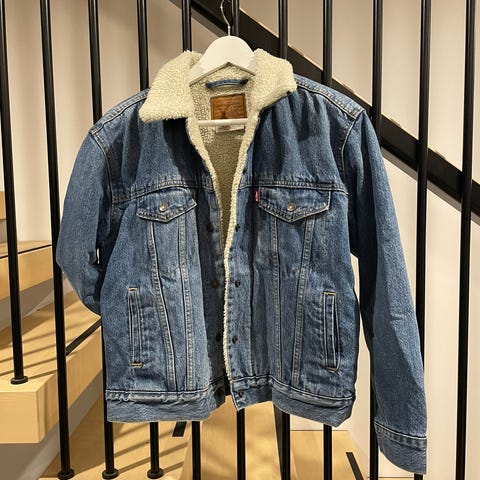 Levi’s naisten farkkutakki koossa S. Sininen denim-materiaali. Takissa on nappikiinnitys edessä sekä rintataskut läpällä ja napilla. Kauluksessa ja sisäpuolella on pehmeä teddyvuori. Uudenveroinen, ei käytönjälkiä. Ovh 149e.