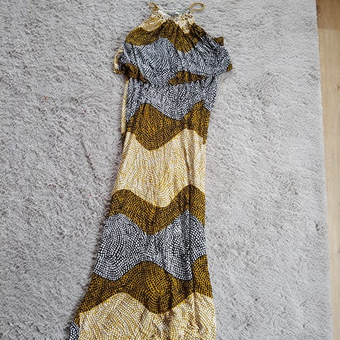 Vaaleansininen kesämekko M, ohutta harkkumaista kangasta, selässä joustokangas. Hyvässä kunnossa, säilytyksestä ryppyinen