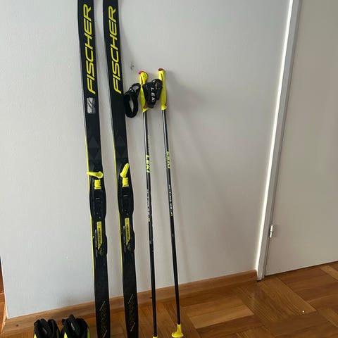 Fischer lasten perinteisen tyylin maastohiihtosukset ja sauvat. Suksien pituus on 140 cm, väritys keltamusta. Suksissa on NNN-yhteensopivat siteet. Mukana tulevien sauvojen pituus on 105 cm, väritys musta-keltainen.